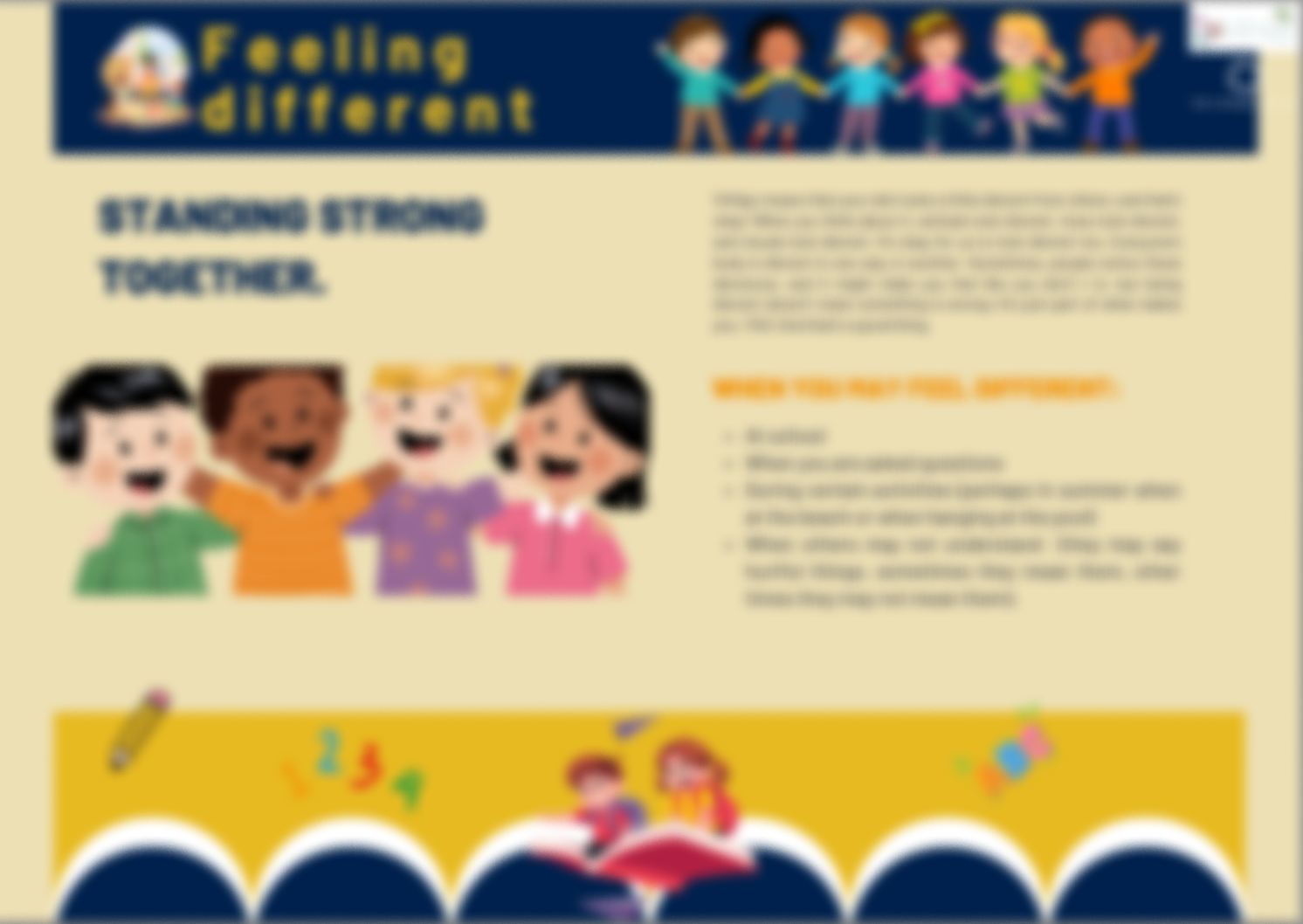 Feeling different can sometimes make children feel unsure, worried, or left out — especially when their body, skin, or abilities don’t look the same as others. This gentle, child-friendly resource helps children understand that differences are a natural and valuable part of being human. The resource encourages children to notice their strengths, celebrate what makes them unique, and feel more comfortable being themselves, while reinforcing that they belong just as they are.